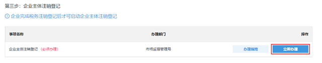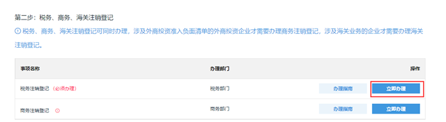 税务部门注销申请是必须办理,点击【立即办理】则跳转到税务部门系统进行税务注销申请。